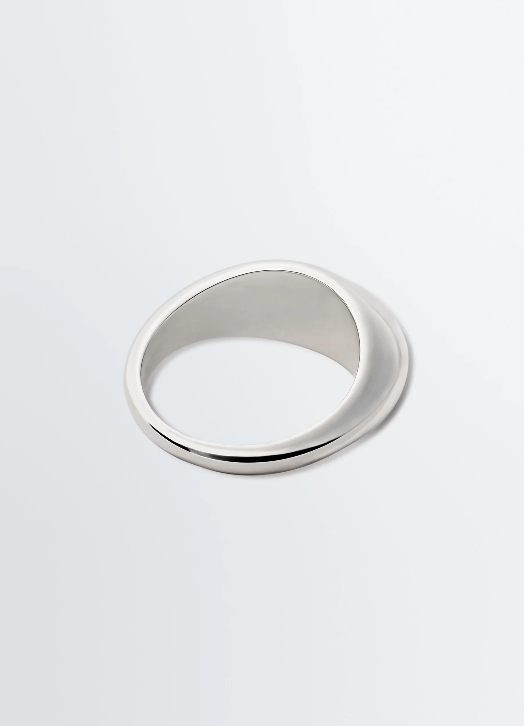 The Drop line is emblematic of the Lemaire wardrobe. This voluminous drop-shaped signature ring is crafted in rhodium-plated silver.