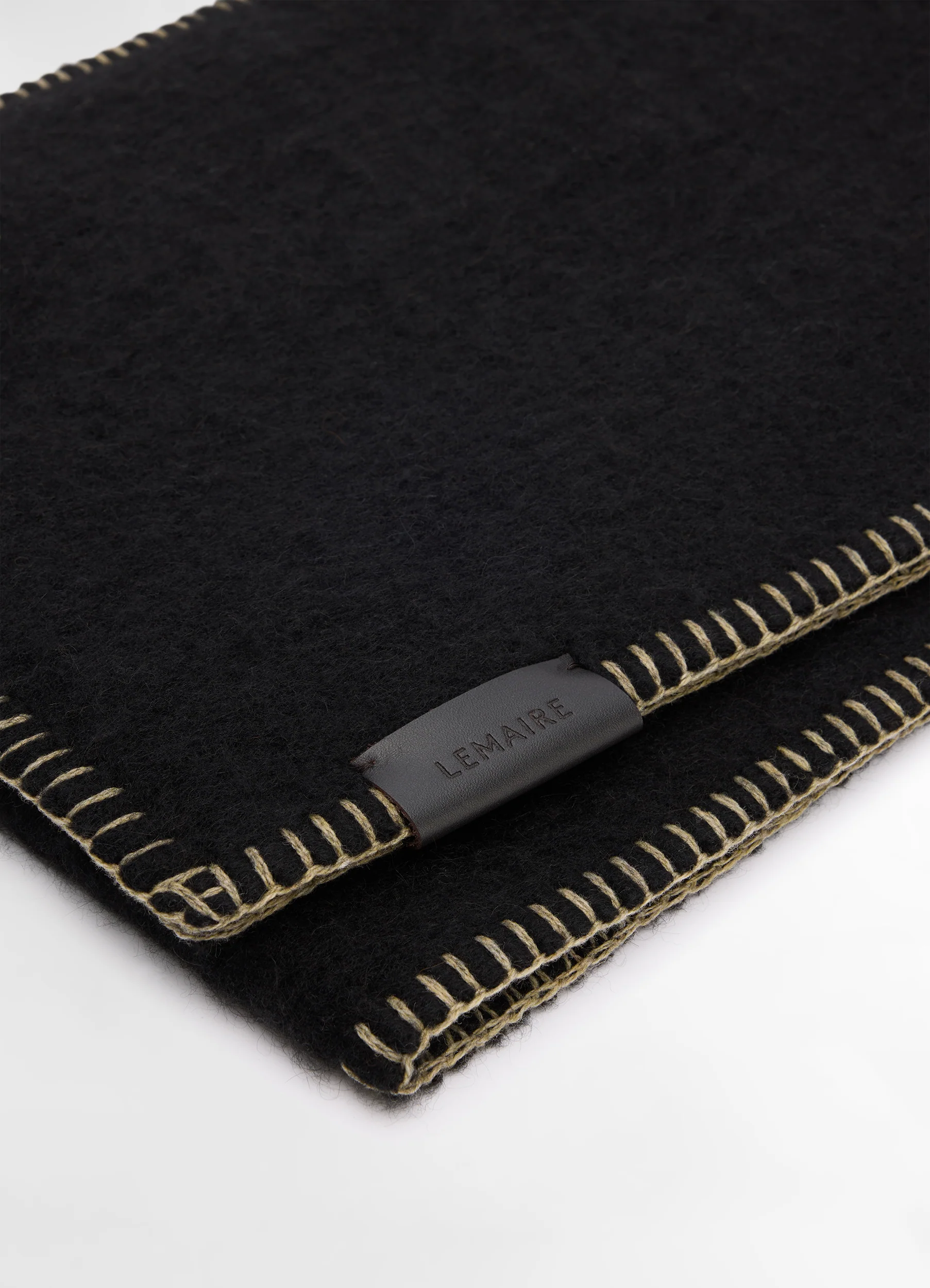 The Cocotte Fluffy Scarf draws its inspiration from the nomadic LEMAIRE vestiaire. It is crafted in a fine and fluffy alpaca wool and features a contrasted cocotte stitch detailing all around the hem. The signature LEMAIRE-embossed soft leather patch is sewn at the hem for a luxurious finish.