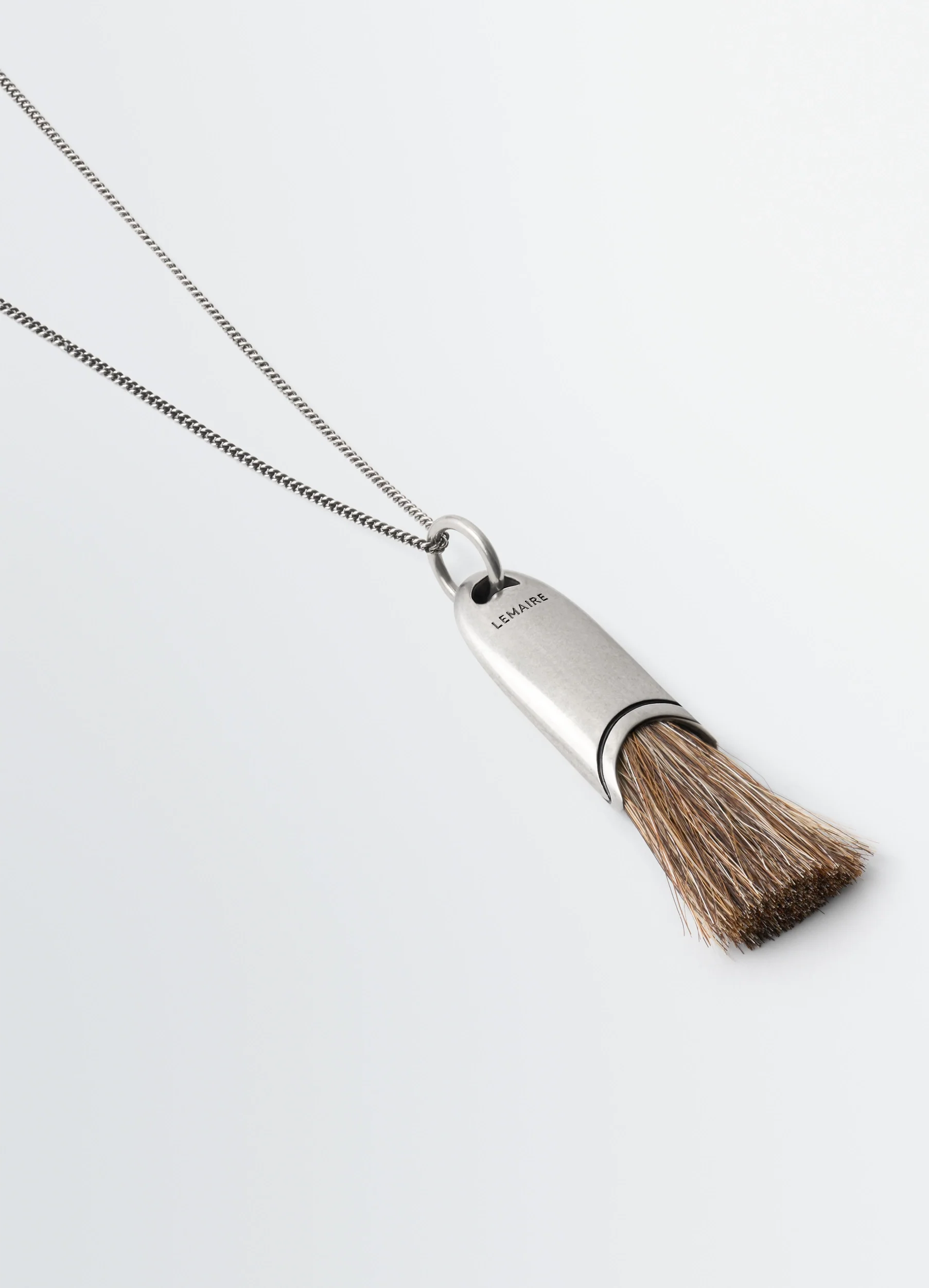 Inspired by the spirit of the cabinet de curiosité, this necklace with personal brush pendant stands between object and jewelry, a boundary dear to Lemaire.
