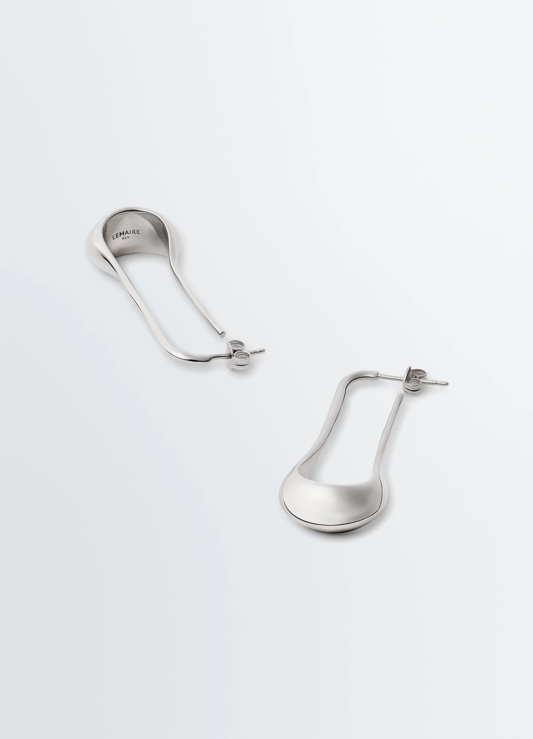The Drop line is emblematic of the Lemaire wardrobe. This pair of signature drop earrings is crafted in rhodium-plated silver.
